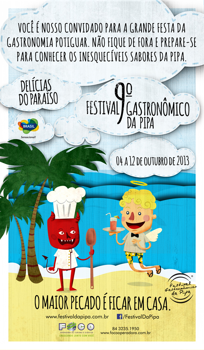 O Festival Gastronômico da Pipa apresenta nesta quinta-feira, 12 de setembro, a programação gastronômica e cultural deste ano, que ocorrerá no período de 04 a 12 de outubro, em Pipa. O evento de apresentação será realizado a partir das 9h, no Mezanino da UnP Unidade Roberto Freire, com a presença de jornalistas, patrocinadores, apoiadores e demais convidados.