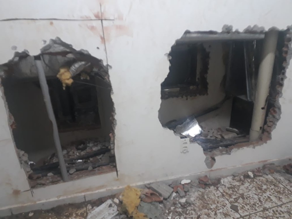 Chegando ao local, a polícia não encontrou nenhum suspeito, porém as paredes por trás da agência tinham sido danificadas. Os criminosos queriam acesso ao cofre da agência, mas fugiram sem conseguir realizar o roubo. O material usado por eles foi abandonado no local e levado pela PM para a Central de Flagrantes da Polícia Civil.