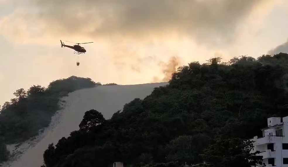 Na manhã desta quarta (7) o helicóptero Potiguar I, da Secretaria Estadual de Segurança Pública (Sesed), foi utilizado para buscar água no mar e jogar sobre os focos de incêndio. Segundo o Centro Integrado de Operações Aéreas (Ciopaer), foram realizados 32 lançamentos de helibalde, um equipamento utilizado pela aeronave para transportar água. Ao todo, somente pelo helicóptero, foram lançados sobre o fogo mais de 10 mil litros de água.