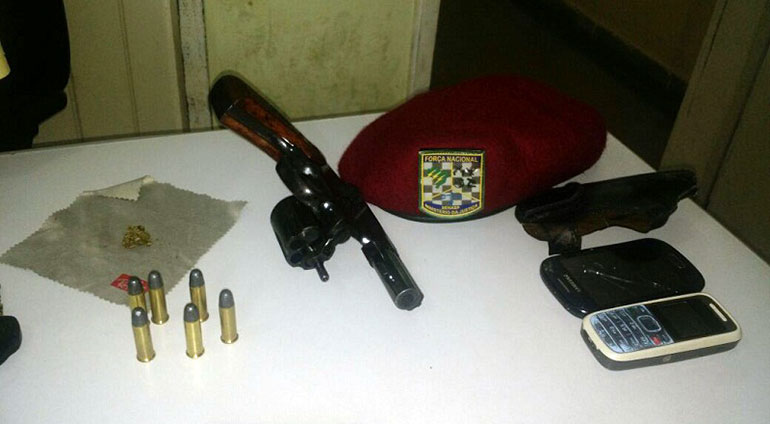 Policiais da Força Nacional de Segurança Pública prenderam na madrugada desta terça-feira (20), no bairro da Ribeira, na zona Leste de Natal, um homem com uma arma de fogo. De acordo com a polícia, Alex da Silva Bezerra foi apreendido um revólver calibre 38 e uma certa quantidade de substância esverdeada semelhante a maconha.