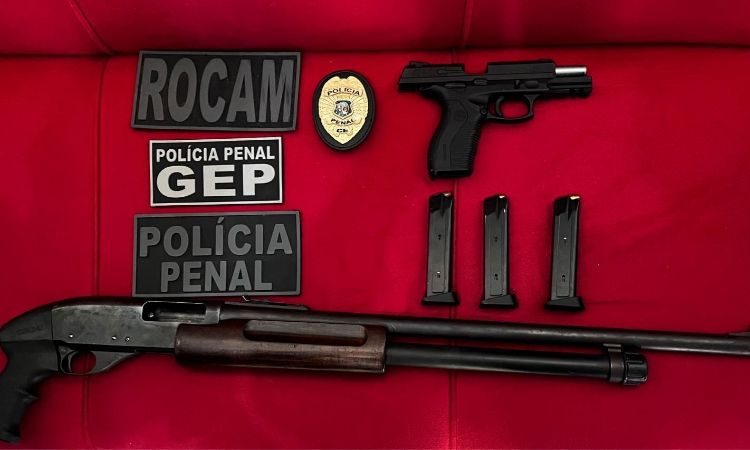O homem foi preso com uma espingarda calibre 12, uma pistola calibre 380 e três carregadores com 54 munições.