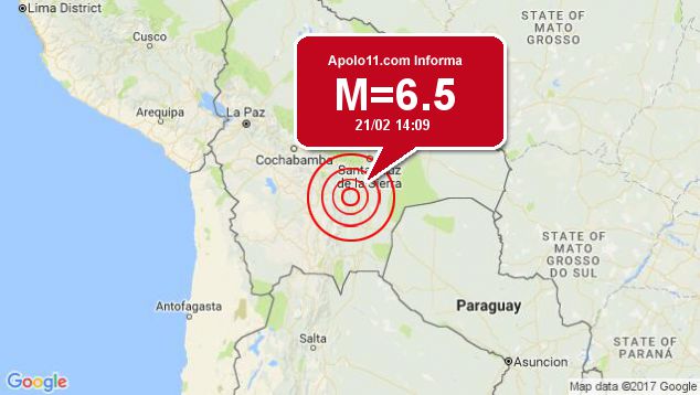 O tremor, registrado à 1h03 (horário local, 2h03 de Brasília), com uma profundidade de 358,3 km, foi localizado a 28 km de Cliza, uma pequena cidade no departamento de Cochabamba.