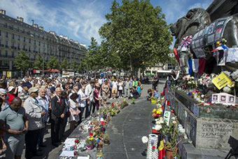 Franceses prestaram uma homenagem hoje (18) às mais de 80 vítimas do massacre ocorrido em Nice, na semana passada, e fizeram um minuto de silêncio diante do Monument du Centenaire, próximo à avenida Promenade des Anglais, palco do ataque.
