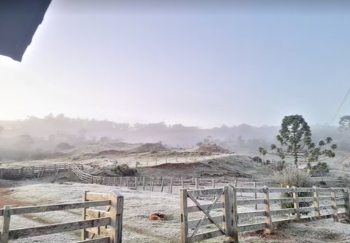 Com a intensificação da onda de frio, toda a região central dos estados do Sul e também o sul de Minas Gerais têm possibilidade de geada nesta sexta.