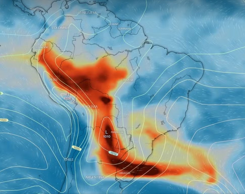 No entanto, dessa vez, ao passar pela Amazônia, a corrente encontrou a fumaça e continuou seu ciclo, empurrando-a para o Sul do país, formando um “corredor de fumaça”.