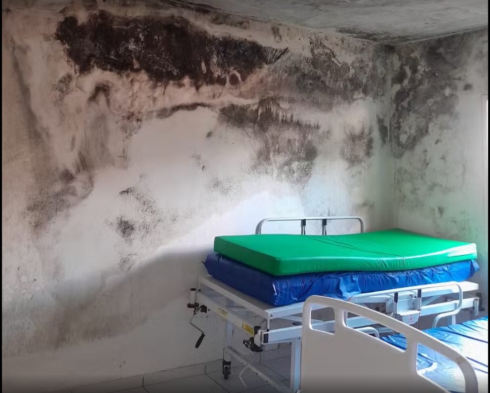 Os problemas estruturais foram expostos por funcionários. Nas imagens enviadas por eles é possível ver o mofo em várias das salas do prédio, podendo ser observado também nos leitos onde os pacientes ficavam internados.