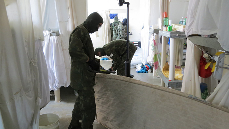 A vistoria e inspeção da unidade prisional está sendo realizada por fuzileiros navais especializados, procedentes de outros estados, com experiência nesta atividade, que participaram de ações de varredura por ocasião da Copa do Mundo, Olimpíada, Pacificação de comunidades, e em Missões de Paz.