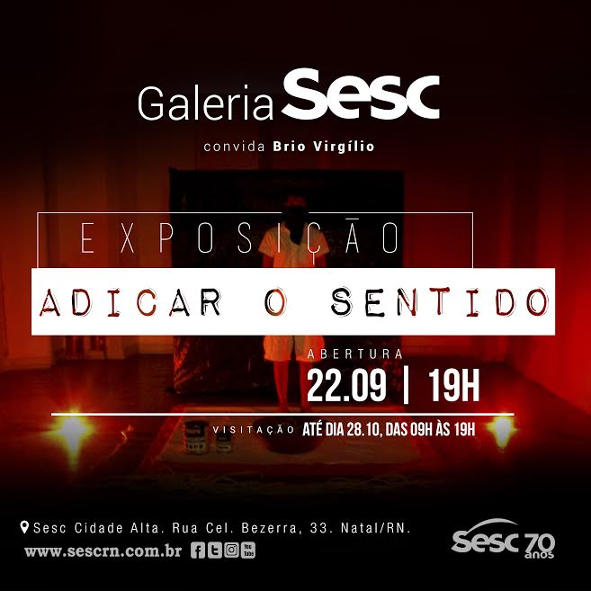 A arte contemporânea ganha espaço na Galeria Sesc Cidade Alta, em Natal, com a exposição “Adicar o sentido”, do artista Brio Virgílio. O evento de abertura será realizado no dia 22/09, a partir das 19h. A exposição é uma iniciativa do Sistema Fecomércio, por meio do Sesc RN, e estará aberta para visitação gratuita até o dia 28/10, das 9h às 19h.