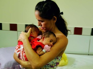 Para a dona de casa Eucivânia Cunha, de 27 anos, seria apenas mais uma gravidez. Entretanto, na 11ª semana de gestação, a surpresa: “O médico fez minha ultrassonografia, perguntou se eu já era mãe e me disse que eu estava grávida de gêmeos. Ele me disse que eu estava numa gestação gemelar com os gêmeos colados”, relembrou Eucivânia contemplando Ana Clara e Any Vitória, as meninas que nasceram unidas pelo cóccix (região glútea).