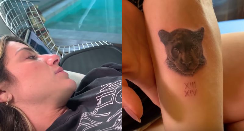 Essa é a maior tattoo que a loira já fez no corpo. Ela ficou um pouco nervosa com o tamanho, mas focou no significado. “A Titi e o Bless vão ficar loucos quando virem a Pantera Negra no meu braço! Representa muito para mim, representa muito para minha família e é realista”, diz no vídeo.