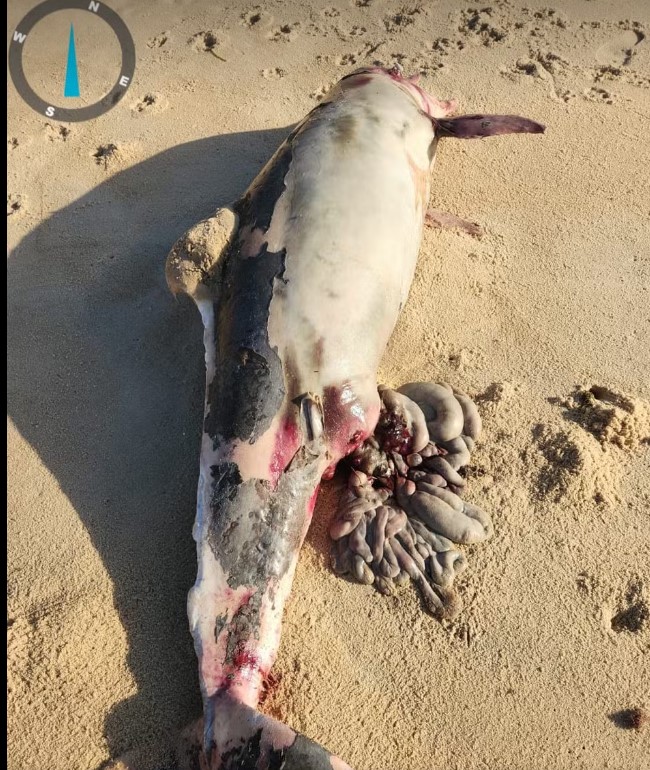 Segundo o presidente da organização, Daniel Solón, o golfinho da espécie boto-cinza já estava com a carcaça em avançado estado de decomposição, o que impediu a equipe de médicos-veterinários de determinar a causa da morte.