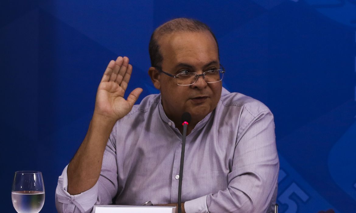 O governador do DF, Ibaneis Rocha, durante coletiva de imprensa no Palácio do Planalto