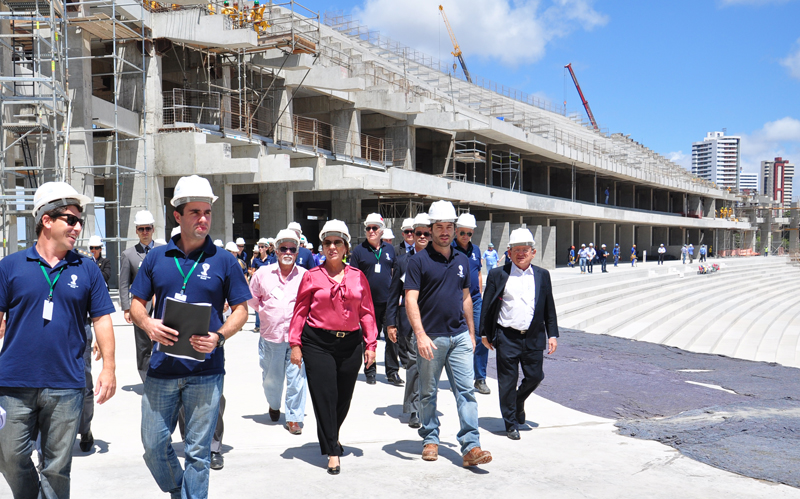 A Arena das Dunas recebeu a visita de uma comissão formada por técnicos da FIFA e Comitê Organizador Local (COL) na manhã desta quinta-feira (31). A governadora Rosalba Ciarlini acompanhou a vistoria técnica operacional ao lado do secretário Extraordinário para Assuntos Relativos à Copa do Mundo 2014, Demétrio Torres, e aproveitou para destacar o avanço das obras do estádio em relação ao cronograma estabelecido pela FIFA. Nessa etapa, a comissão de técnicos da FIFA e do COL está vistoriando as seis sedes que não participarão da Copa das Confederações.