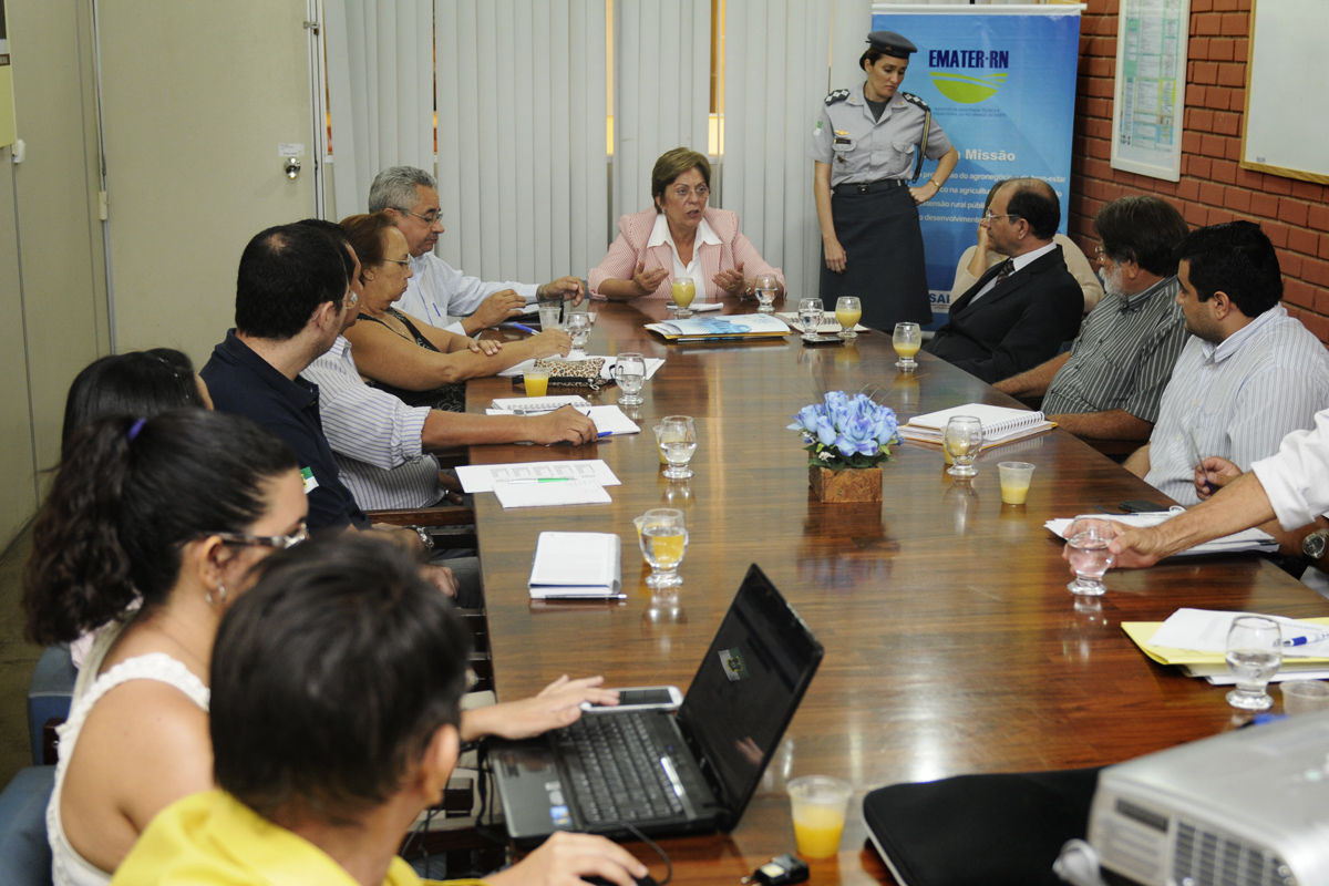 Na manhã desta terça-feira (5), em uma reunião de trabalho realizada na sede do Instituto de Assistência Técnica e Extensão Rural do RN (EMATER/RN), a governadora Rosalba Ciarlini tratou de políticas relacionadas ao interior do Rio Grande do Norte como irrigação, Compra Direta, abatedouros públicos, Programa do Leite e escolas de inclusão digital para o homem do campo. A reunião teve a participação do secretário interino de Estado da Agricultura, Pecuária e da Pesca, José Simplício de Holanda, do diretor Geral da Emater, Ronaldo Cruz, e de diretores e técnicos do órgão.