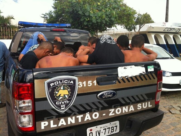 Oito homens foram presos na noite de ontem suspeitos de envolvimento no roubo de uma picape modelo Amarok, tomada de assalto de um estudante no bairro de Capim Macio. O veículo foi recuperado a partir do aparelho celular da vítima, que possui GPS e apontou sua localização. Segundo a polícia, o automóvel foi encontrado no bairro de Mãe Luiza. Dentro da casa onde o grupo estava os policiais ainda apreenderam um revólver calibre 38, uma pistola 380, munições intactas, dois coletes balísticos, drogas e oito celulares sem notas fiscais.