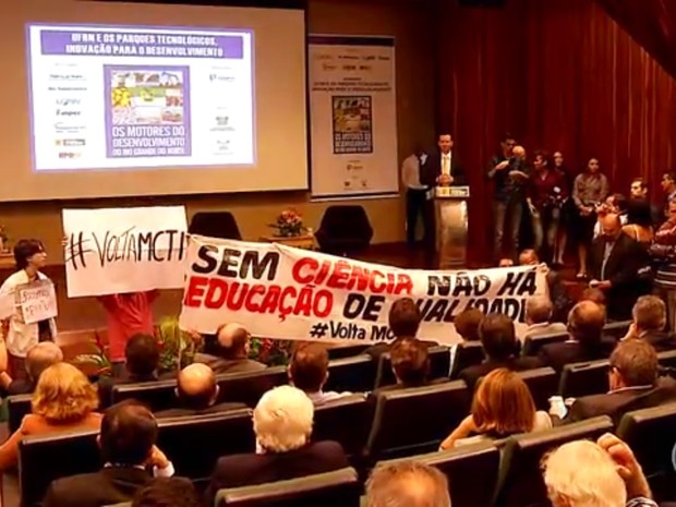 Com faixas e cartazes, os manifestantes criticaram a união do Ministério da Ciência e Tecnologia com o Ministério da Comunicação, além de também protestarem contra o governo do presidente interino Michel Temer. Kassab não respondeu aos manifestantes, mas reconheceu que o Nordeste recebe poucos projetos e investimentos em parques tecnológicos, por exemplo.