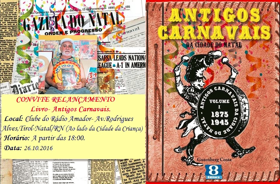 O historiador Gutenberg Costa relança seu livro “Antigos Carnavais da Cidade do Natal” nesta quarta-feira (26) a partir das 18h, na sede do Clube de rádio Amador, em Tirol.