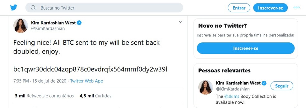 Os posts já foram deletados da maioria dos perfis. Eles foram vistos nas contas do homem mais rico do mundo, Jeff Bezos, do fundador da Tesla Elon Musk, do fundador da Microsoft Bill Gates, do ex-presidente da Barack Obama, de Joe Biden, rival de Trump na disputa das eleições presidenciais dos Estados Unidos. A celebridade Kim Kardashian e o marido dela, o rapper Kanye West, também foram vítimas.