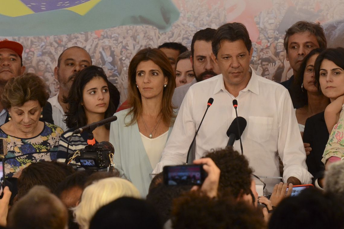 O candidato Fernando Haddad faz pronunciamento após a divulgação do resultado das eleições presidenciais.