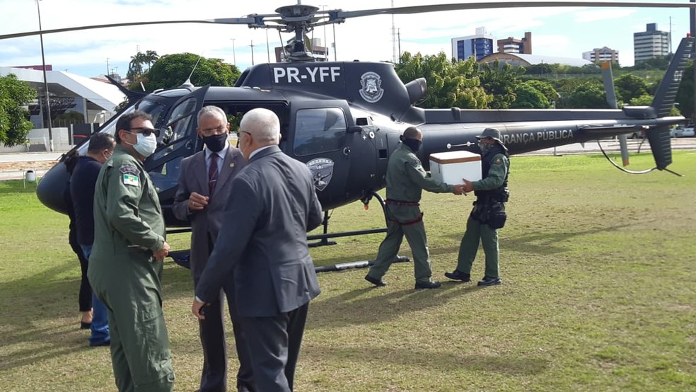 O helicóptero Potiguar 1, da Secretaria de Estado da Segurança Pública, decolou por volta das 15h dessa sexta-feira (18), do campo de futebol do Centro Administrativo, em Natal, com 5.734 doses de vacinas contra Covid e medicamentos para as cidades de Mossoró e Pau dos Ferros. A aeronave foi acionada para acelerar a distribuição dos imunizantes.