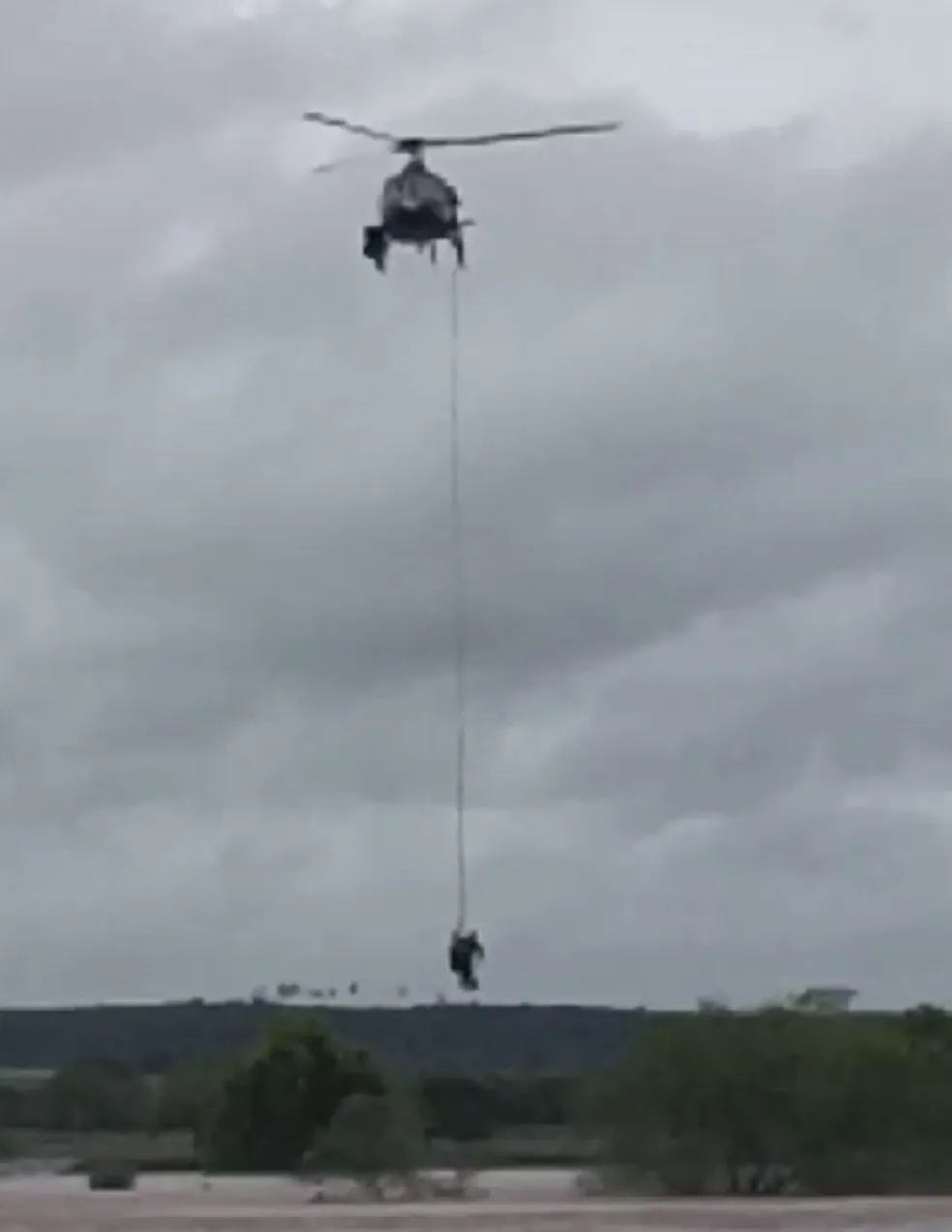 Segundo a Secretaria de Segurança Pública do Rio Grande do Norte (Sesed), o Centro Integrado de Operações Aéreas (Ciopaer) foi acionado enviou o helicóptero para realizar o resgate de duas pessoas que estavam em situação de perigo em meio a uma enxurrada, “em iminente risco de afogamento”.