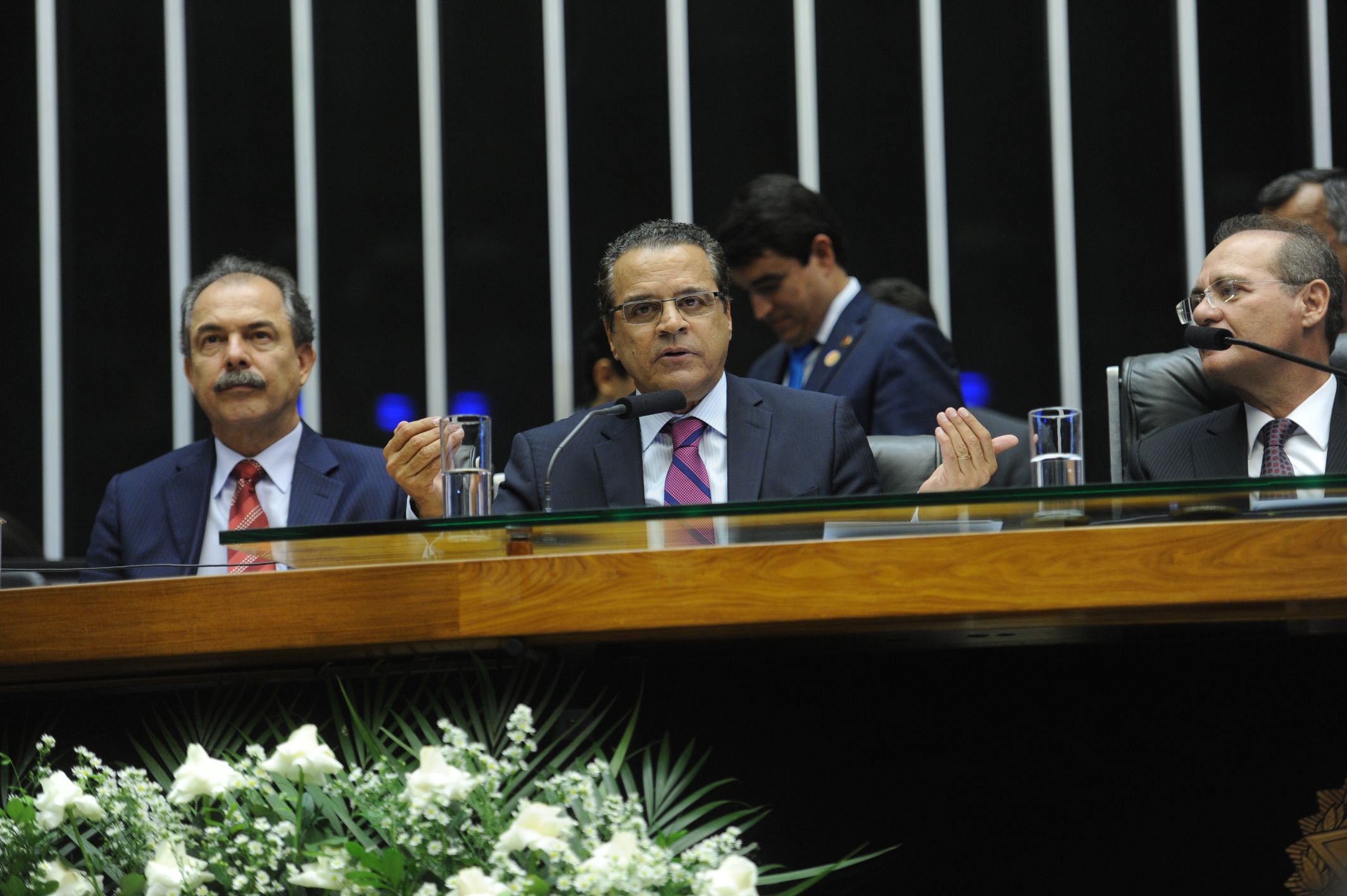 O presidente da Câmara, deputado Henrique Eduardo Alves, negou, nesta segunda-feira (3), que o Congresso esteja armando pautas-bomba que aumentarão os gastos do Executivo e comprometerão o equilíbrio fiscal do Brasil. Durante pronunciamento na sessão de abertura dos trabalhos legislativos, ele afirmou que o objetivo do debate na Câmara é fazer aquilo que atenda “o desejo, a esperança, o sonho e o direito de todos os cidadãos brasileiros”. Estavam presentes na solenidade de abertura dos trabalhos legislativos, entre outras autoridades, o presidente do Supremo Tribunal Federal, Joaquim Barbosa; o presidente do Senado, Renan Calheiros; o ministro-chefe da Casa Civil, Aloízio Mercadante; e a ministra da Secretaria de Relações Institucionais, Ideli Salvati.