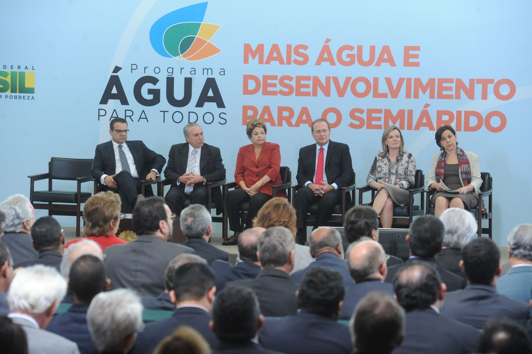 O presidente da Câmara dos Deputados, Henrique Eduardo Alves, participou nesta terça-feira (10), em Brasília, da assinatura pela presidenta Dilma Rousseff do termo de compromisso do Programa Água para Todos, que vai alcançar 336 municípios do Semiárido Nordestino. Mais de 41 mil famílias serão beneficiadas. A iniciativa faz parte do Plano Brasil sem Miséria e visa universalizar o acesso e uso de água para as populações carentes. A governadora Rosalba Ciarlini e o diretor-geral do Dnocs, Emerson Fernandes, também participaram da solenidade. O presidente da Federação dos Municípios do Rio Grande do Norte (Femurn) e prefeito de Lajes, Benes Leocádio, assinou o termo de compromisso em nome dos demais prefeitos potiguares. Segundo o ministro da Integração Nacional, Fernando Bezerra, devem ser entregues 750 mil cisternas até o ano que vem.