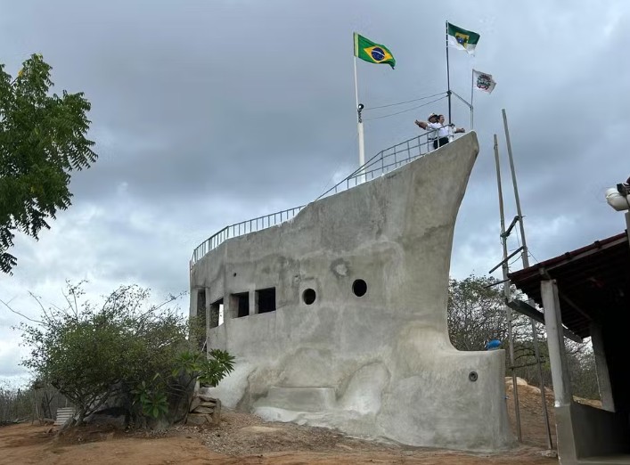 “Já ia bem adiantado esse mirante, chegou uma taxista, que veio deixar a gente aqui, aí dali do portão ela disse: ‘isso é um navio e parece com Titanic'”, contou Jailson.