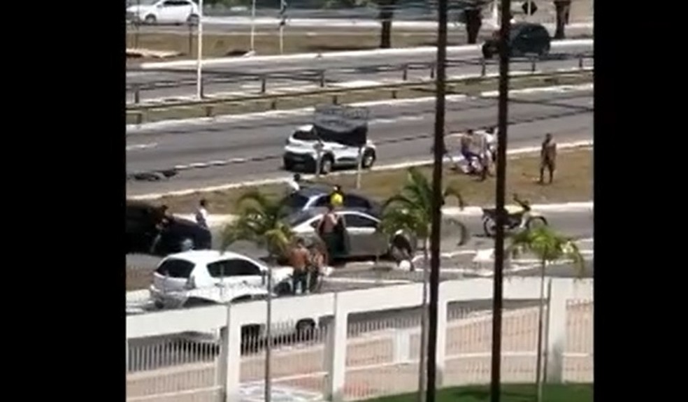 Vídeos registrados por moradores da região e por motoristas que passavam pelo trecho mostram correria, carros andando na contramão e um homem sendo espancado por um grupo de torcedores.