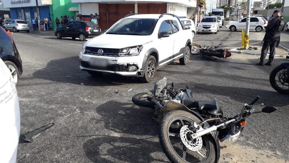 Duas motocicletas ficaram caídas ao lado do corpo. A Polícia Militar faz o isolamento do local enquanto aguarda a chegada da equipe do Instituto Técnico-Científico de Perícia (Itep).