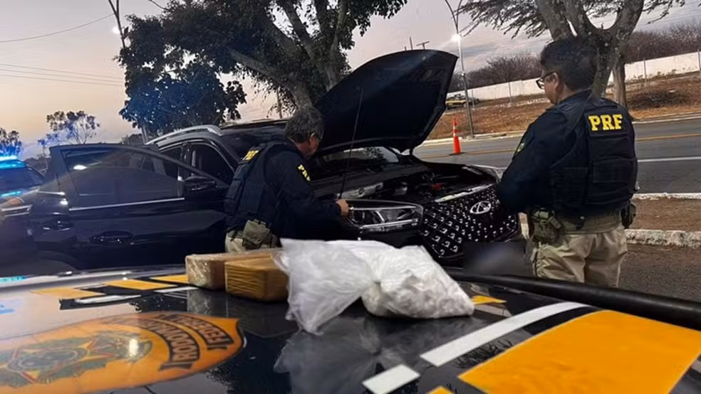 Após a constatação, eles realizaram uma inspeção minuciosa, que revelou a presença de drogas e documentação falsa no carro.