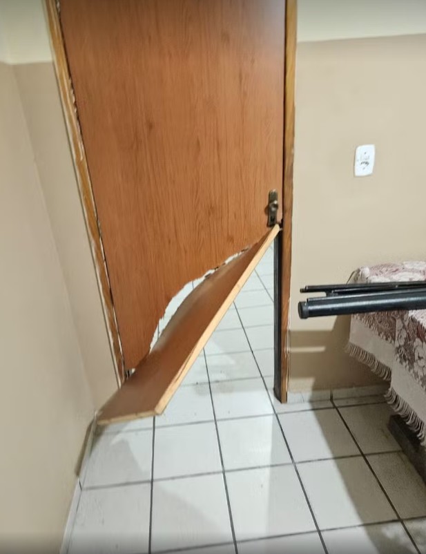 Dentro da igreja, os policiais encontraram uma abertura feita na parede a marretadas, além de portas quebradas e armários revirados.