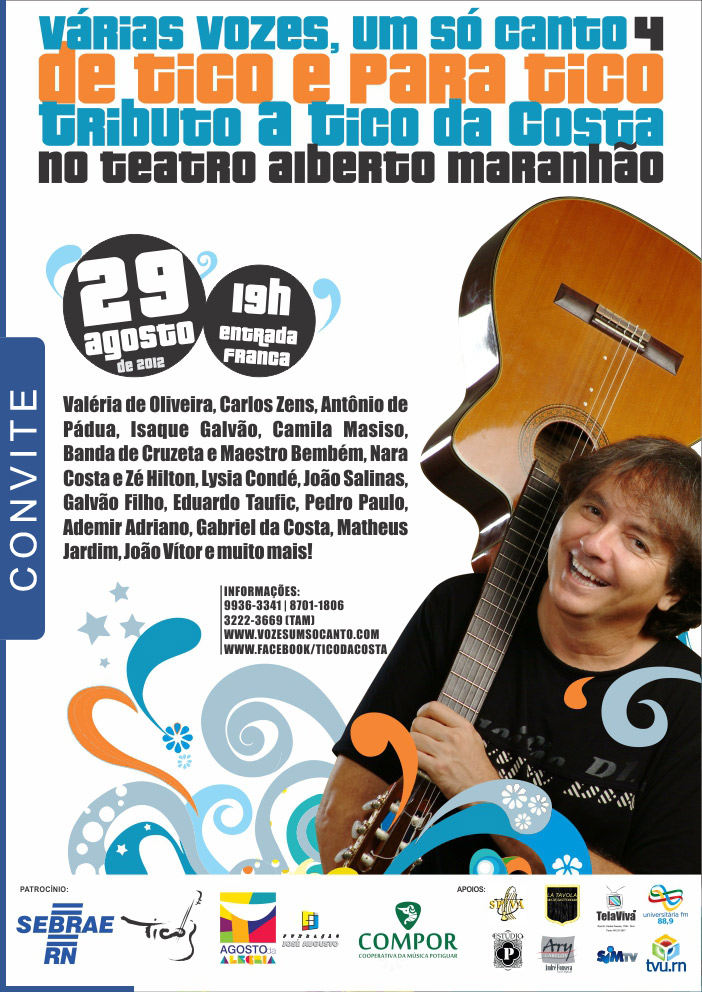 Será no próximo dia 29 de agosto, no Teatro Alberto Maranhão, o quarto tributo “Várias Vozes um só Canto – de Tico e para Tico”, em homenágem a um dos maiores cantores/ compositores do Rio Grande do Norte.