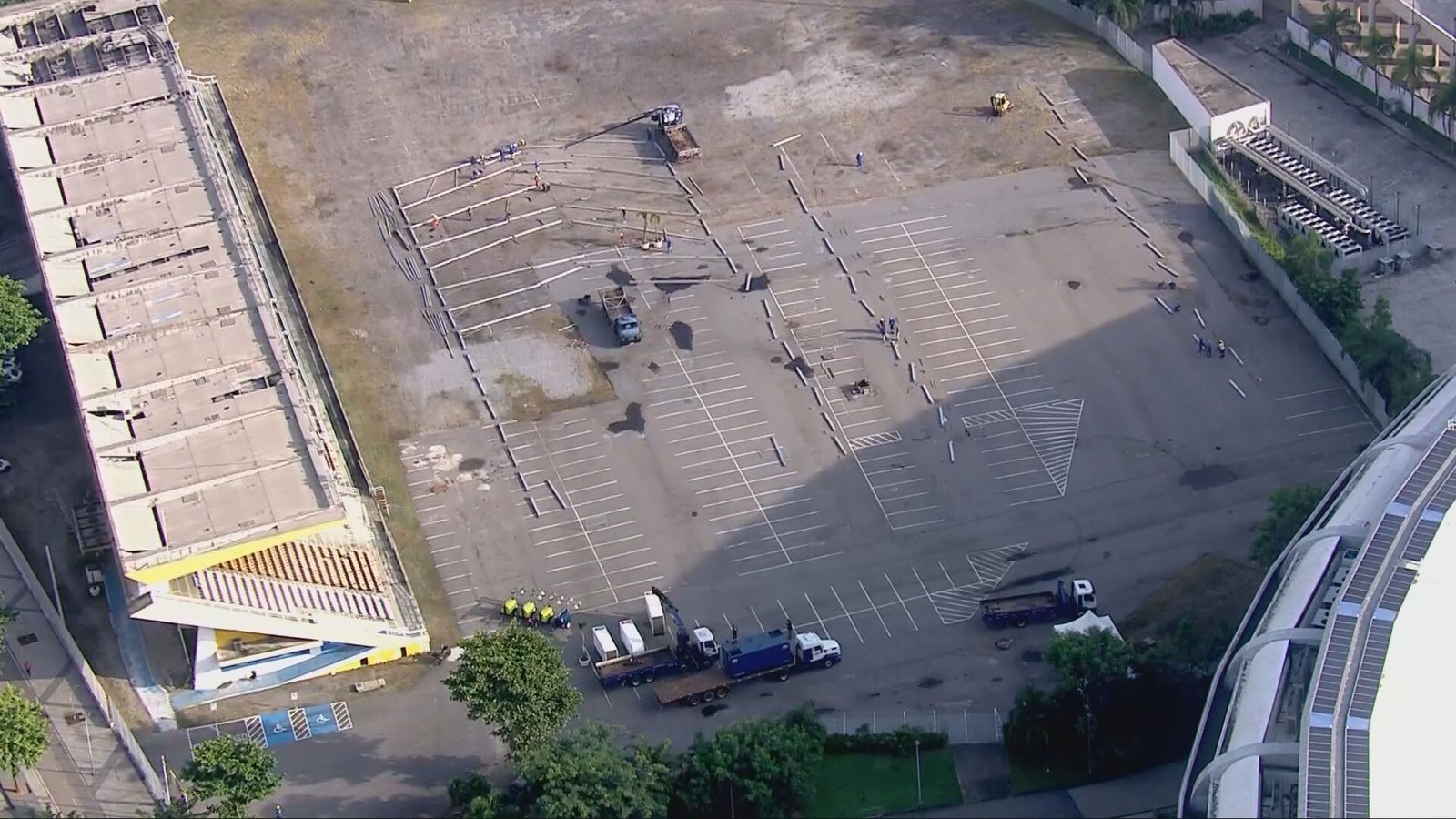 Operários começavam a erguer, na manhã desta terça-feira (31), a estrutura do hospital de campanha no complexo do Maracanã, na Zona Norte do Rio. Os leitos serão erguidos no espaço onde ficava o estádio de Atletismo Célio de Barros.