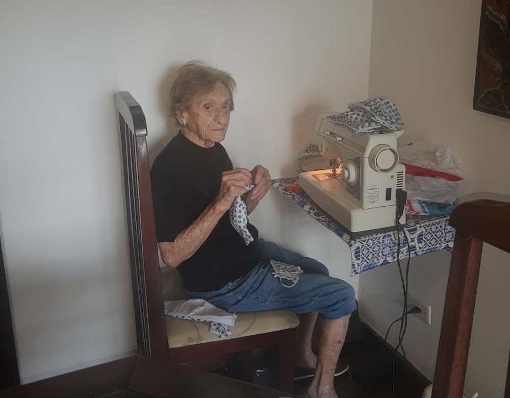Com a saúde boa, e em meio à pandemia do novo coronavírus que impediu a idosa de sair de casa, ela teve a ideia de confeccionar máscaras para doação. Dona Pina relata que o filho comentou sobre a forma de prevenção, e ela decidiu começar. “Sou costureira desde sempre e é fácil. Em dois dias, fiz várias, algumas até foram para doação”, comenta.