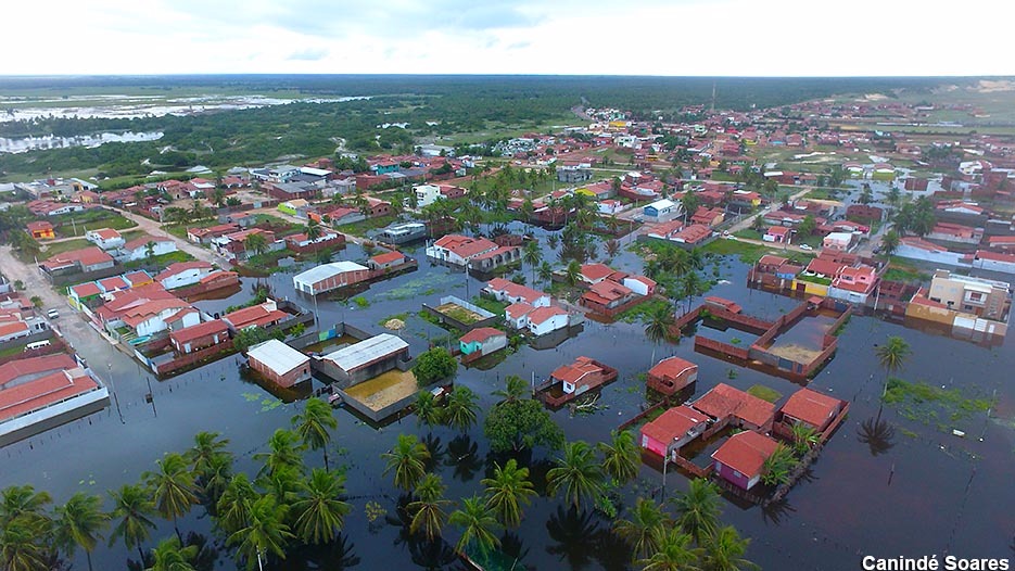 Imagem aérea normalmente é bonita e impactante. A desta semana não é diferente. Mas é de uma triste realidade além de mostrar a incapacidade do poder público. Incapacidade de gerenciar onde possa construir ou não, e depois da catástrofe não poder resolver. Aí fica o sofrimento do povo por ter seus bens alagados e destruídos. Isso é em Touros a 80 quilômetros de Natal.