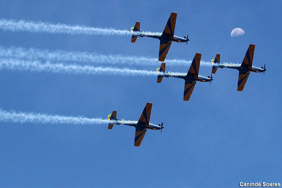 A Esquadrilha da Fumaça, que há 66 anos realiza apresentações nos ares do Brasil e do mundo, se apresentou no final da tarde dessa sexta-feira, 20 de julho, em Natal. A exibição fez parte do circuito de demonstrações aéreas na região Nordeste. A data escolhida coincidiu com o dia do nascimento de Santos Dumont, conhecido como pai da aviação nacional.