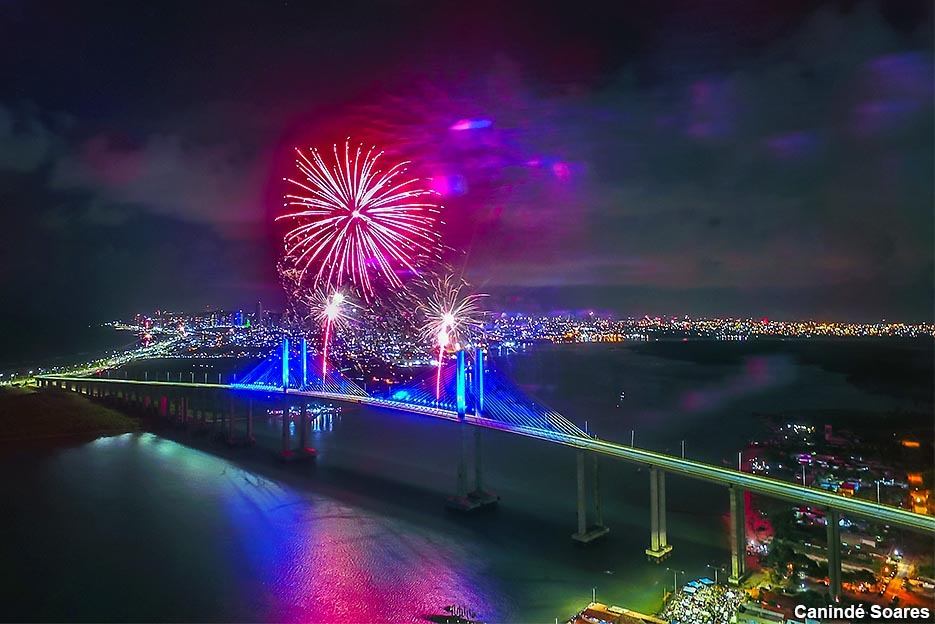 Com essa imagem da queima de fogos do ano passado na Ponte Newton Navarro, quero desejar a todos um Feliz Ano Novo, cheio de conquistas, realizações, saúde, trabalho e dinheiro no bolso!