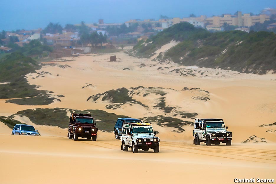 Na última segunda-feira, 10 de junho, foi dia de conhecermos um dos mais novos e belos passeios pelo litoral sul. É uma aventura off road em veículo 4×4 credenciados por trilhas nativas da região de Nísia Floresta onde visualizemos o complexo lagunar, composto por lagoas de águas cristalinas. Passamos por cinco lagoas e em quatro delas com parada para banho. O almoço foi no bar e restaurante Mirante do Mar na beira da praia de Camurupim que é famosa por magníficas formações de arenito no quebramar, formando verdadeiras piscina naturais de água salgada. Na lagoa de Arituba é a outra opção para almoço e o bar e restaurante Arituba Point, de Josivam, um lugar muito aconchegante com mesas embaixo de árvores e redes espalhadas pelo espaço a beira da lagoa para descansar e desfrutar da beleza do lugar. Após o almoço subimos as dunas onde pararmos para brincar com a descida do skibunda e sandboard, e desse mesmo lugar pode se apreciar o pôr do sol para fazer as belas fotos nas dunas encantadas de Búzios. Infelizmente o dia foi de chuva e céu totalmente nublado e não tivemos as belezas de crepúsculo. Esse é o melhor e o mais completo passeio do município de Nísia Floresta. São 11 horas (em média) de estonteantes belezas naturais e com o melhor tempo para desfrutar de tudo com tranquilidade.