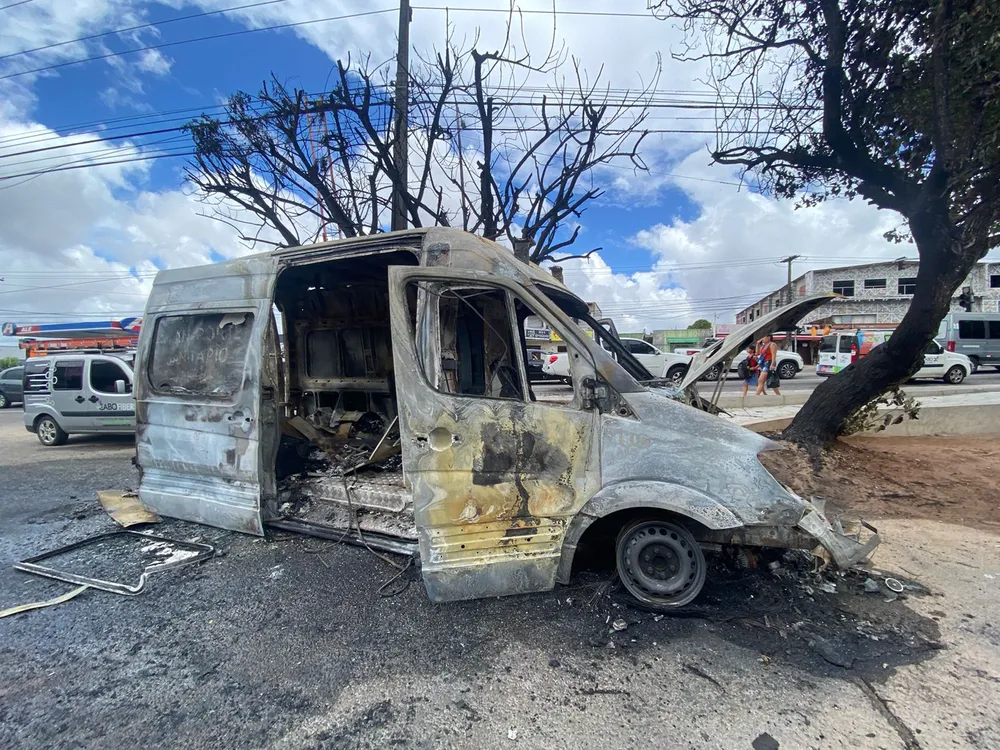 Um incêndio atingiu uma ambulância, na manhã desta terça-feira (8), na Zona Norte de Natal. O veículo ficou destruído após o incidente.
