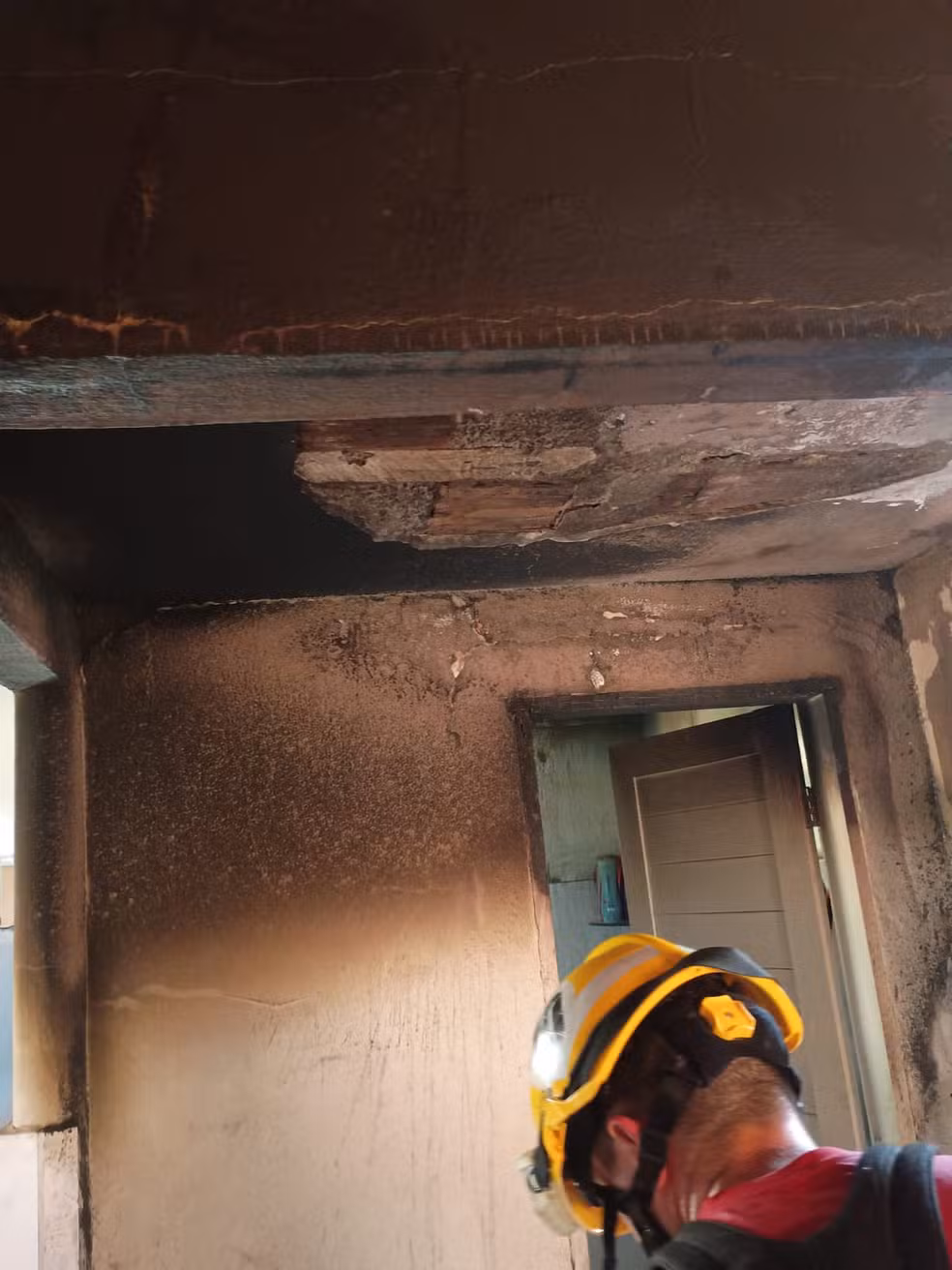 Segundo os bombeiros, o fogo atingiu camas, um celular, um ventilador, um guarda-roupas, documentos e um criado-mudo, mas ficou restrito ao primeiro quarto da casa, não atingindo outros cômodos.