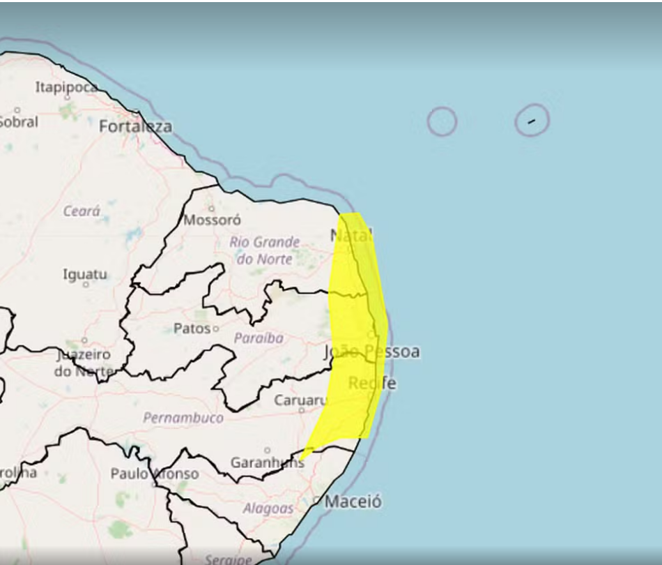 No alerta amarelo, as chuvas variam de 20 a 30 milímetros por hora e chegam a até 50 mm por dia. Segundo o Inmet, nesse alerta há baixo risco de alagamentos e pequenos deslizamentos nas cidades com essas áreas de risco.