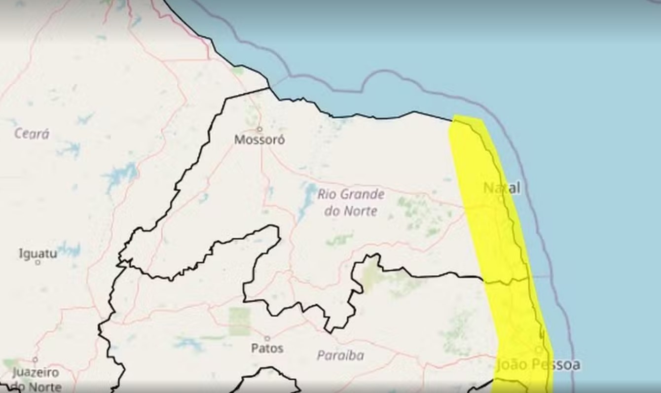 O Instituto Nacional de Meteorologia (Inmet) emitiu um alerta de acumulado de chuvas para 36 cidades do Rio Grande do Norte, entre elas a capital Natal. O aviso vai até 10h desta quarta-feira (12).