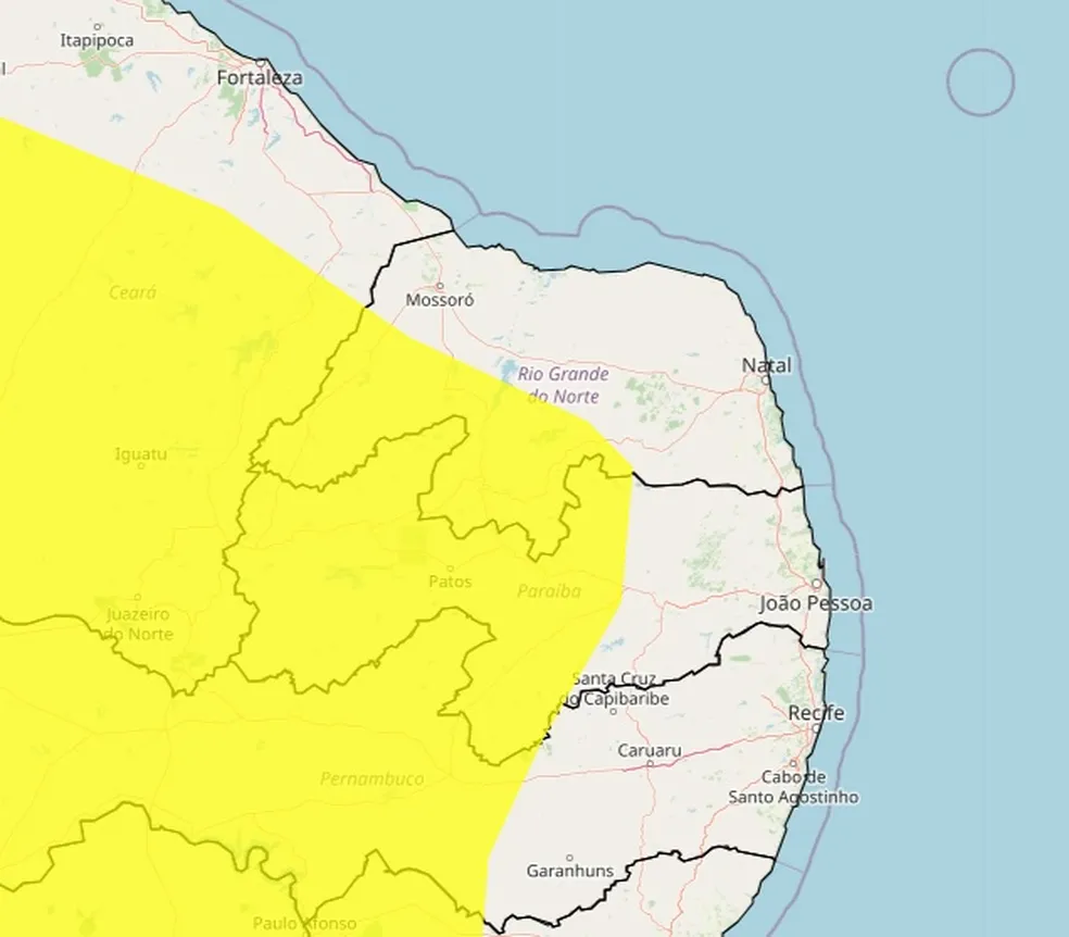 O alerta é de perigo potencial (cor amarela), o primeiro numa escala de três níveis no grau de severidade do órgão nacional. Os outros dois níveis são perigo (laranja) e grande perigo (vermelho).