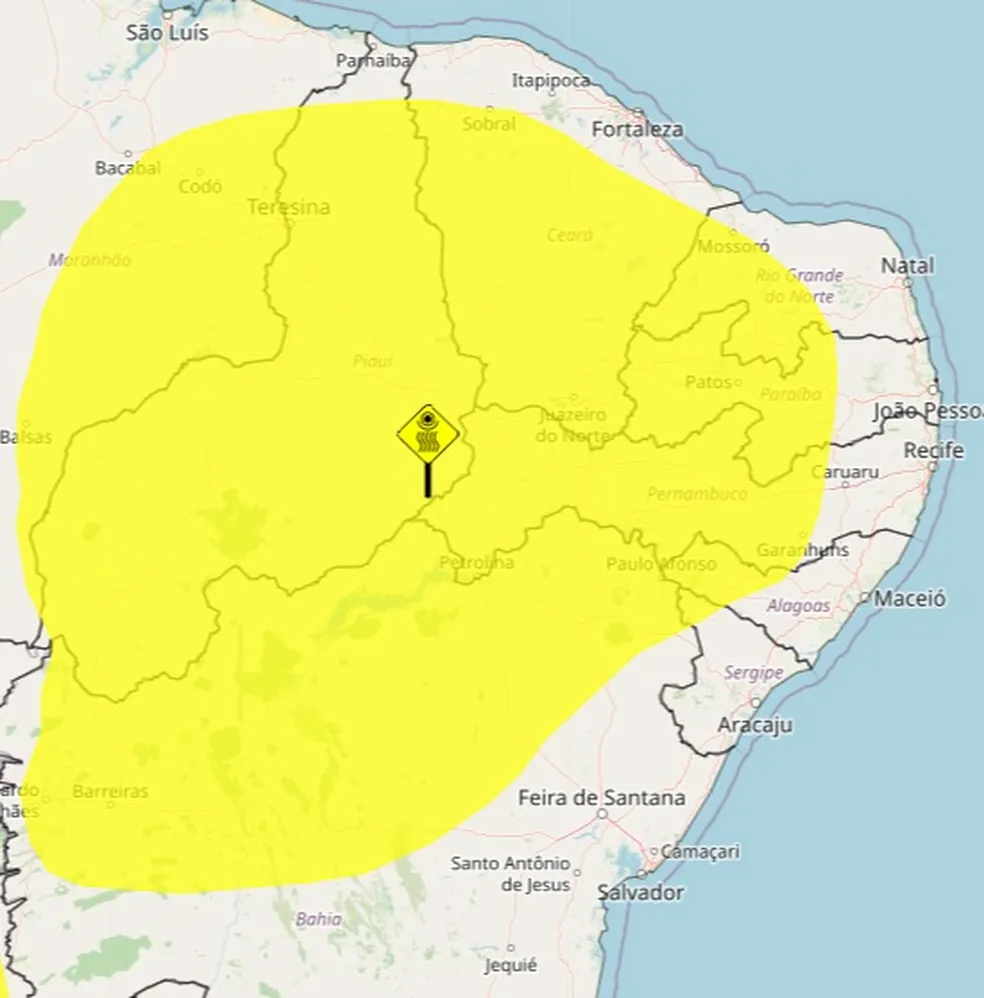 O alerta é da cor amarela, que representa perigo potencial, o primeiro nível de três possíveis no grau de severidade do órgão. Os outros dois são da cor laranja (perigo) e da cor vermelha (grande perigo).