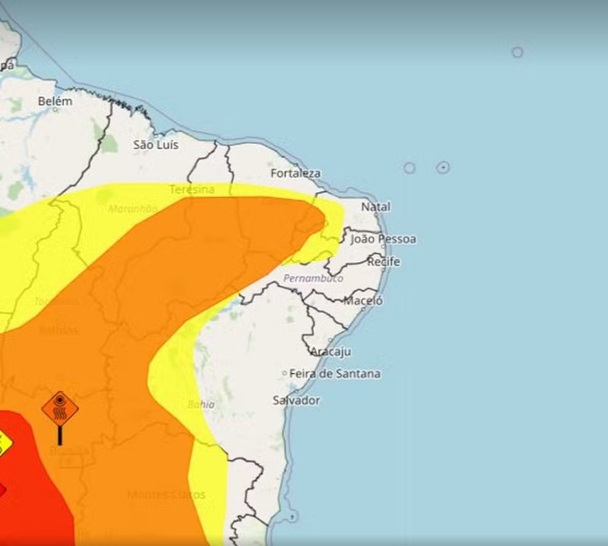 Grau de severidade: laranja (perigo), o nível intermediário na escala do Inmet