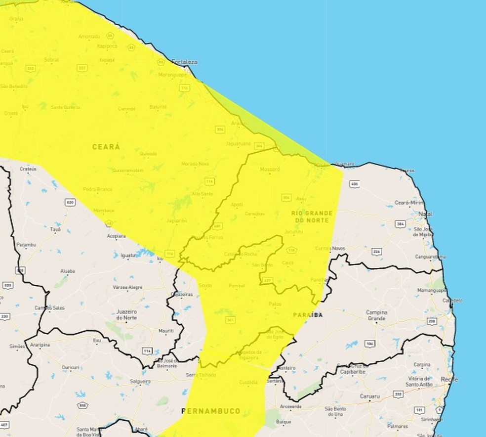 O alerta também é válido para cidades de outros estados do Nordeste e também do Sudeste, Centro-Oeste e Norte.