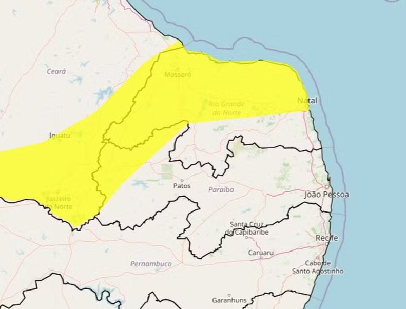 O alerta é da cor amarela, que representa perigo potencial, o nível mais baixo entre os três no grau de severidade do órgão. Os outros dois níveis são: laranja (perigo) e vermelho (grande perigo).