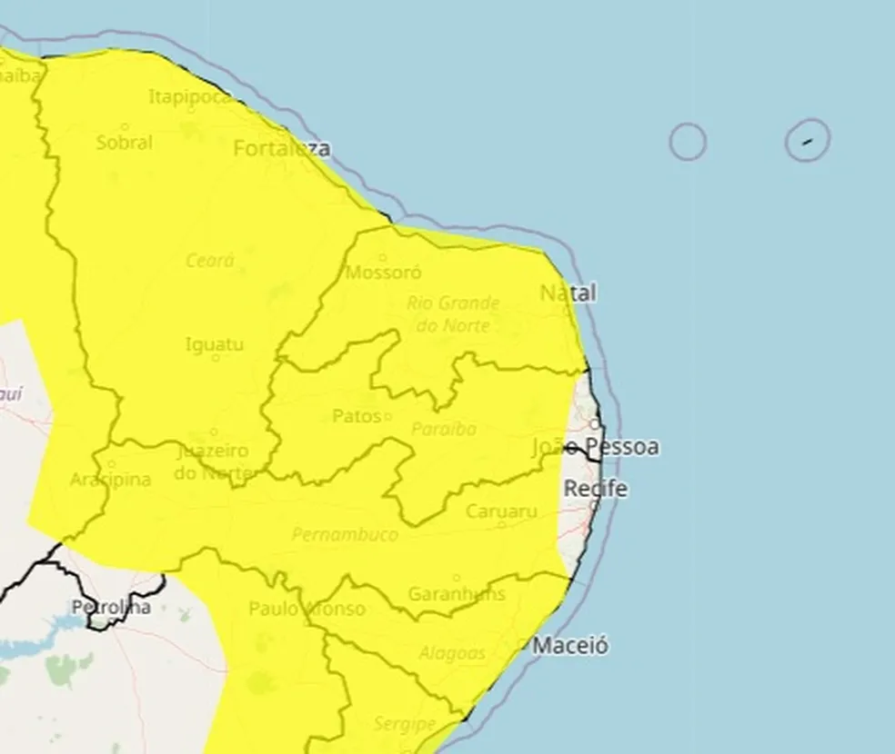 O aviso é de perigo potencial (amarelo), o primeiro na escala de três graus de severidade.