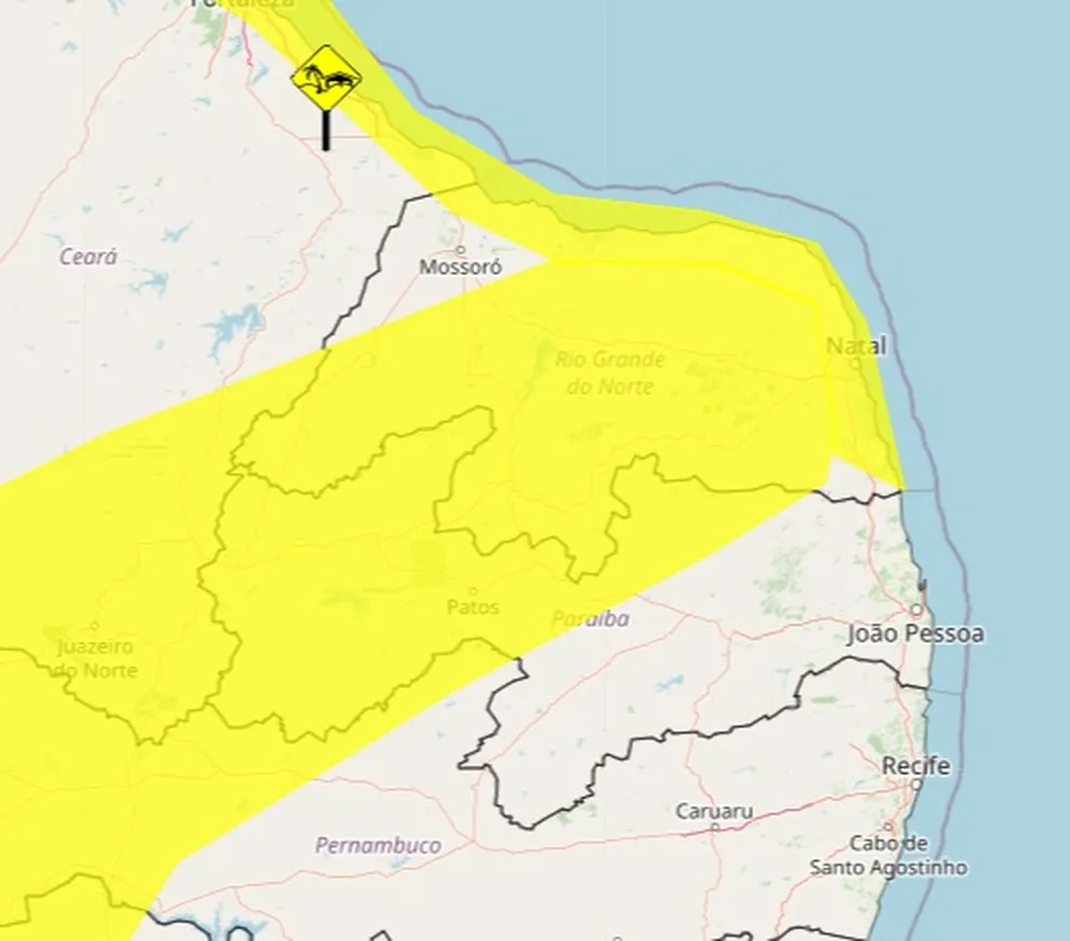O Instituto Nacional de Meteorologia (Inmet) emitiu dois alertas para o Rio Grande do Norte: um vendaval e um de ventos costeiros intensos.